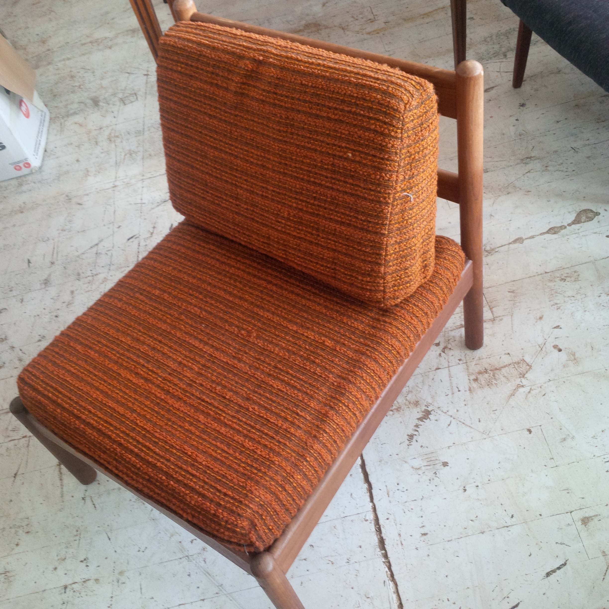 Retro křesílka v před-renovačním stavu s původním čalouněním.
